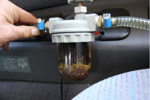 どうもなんとなく調子が悪くて、寒さのせいで燃料である天ぷら廃油の粘度が高くなってしまっていいるから……、と思っていたのですが、燃料フィルターを点検したら原因が判明。 ⇧天ぷら廃油は自作の濾過装置で天かすなどを除去し使用しているのですが、今回は…